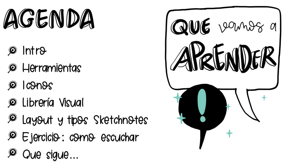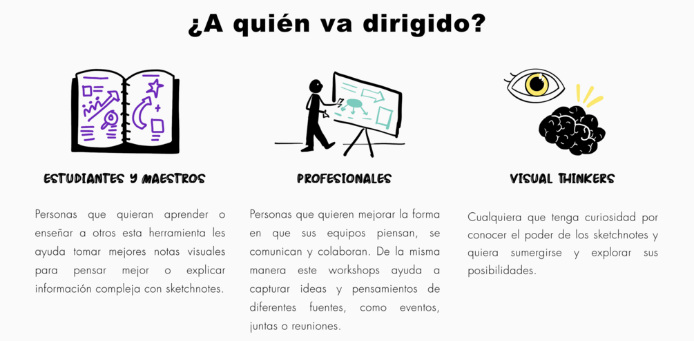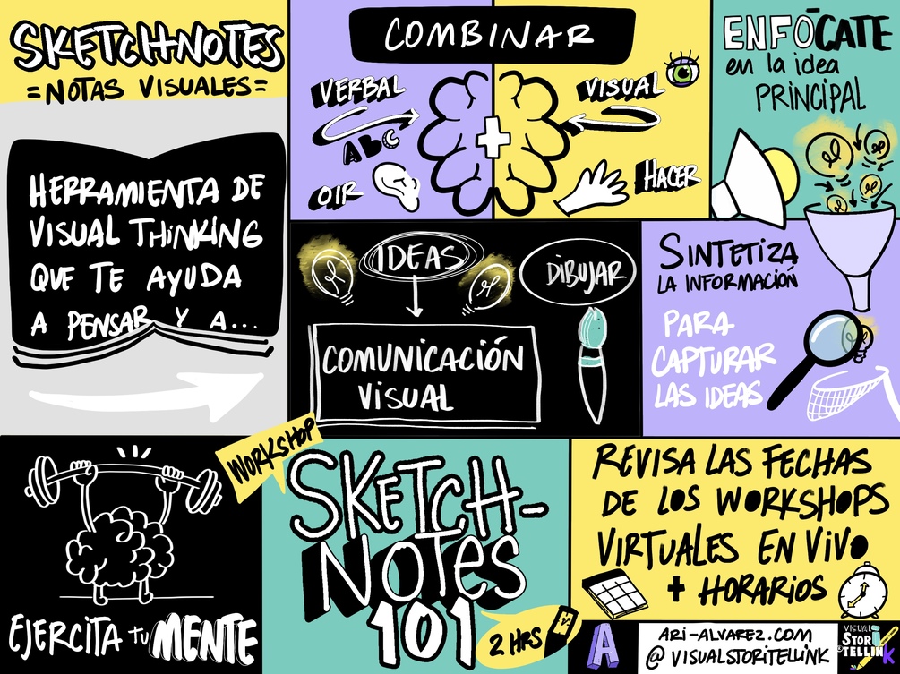 Este es un workshop online en vivo para empezar con sketchnotes (o notas visuales como también se les conoce) con duración de 3 horas.