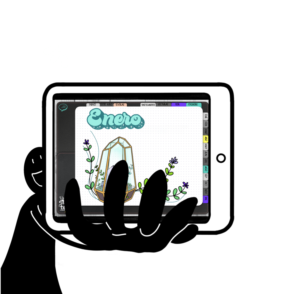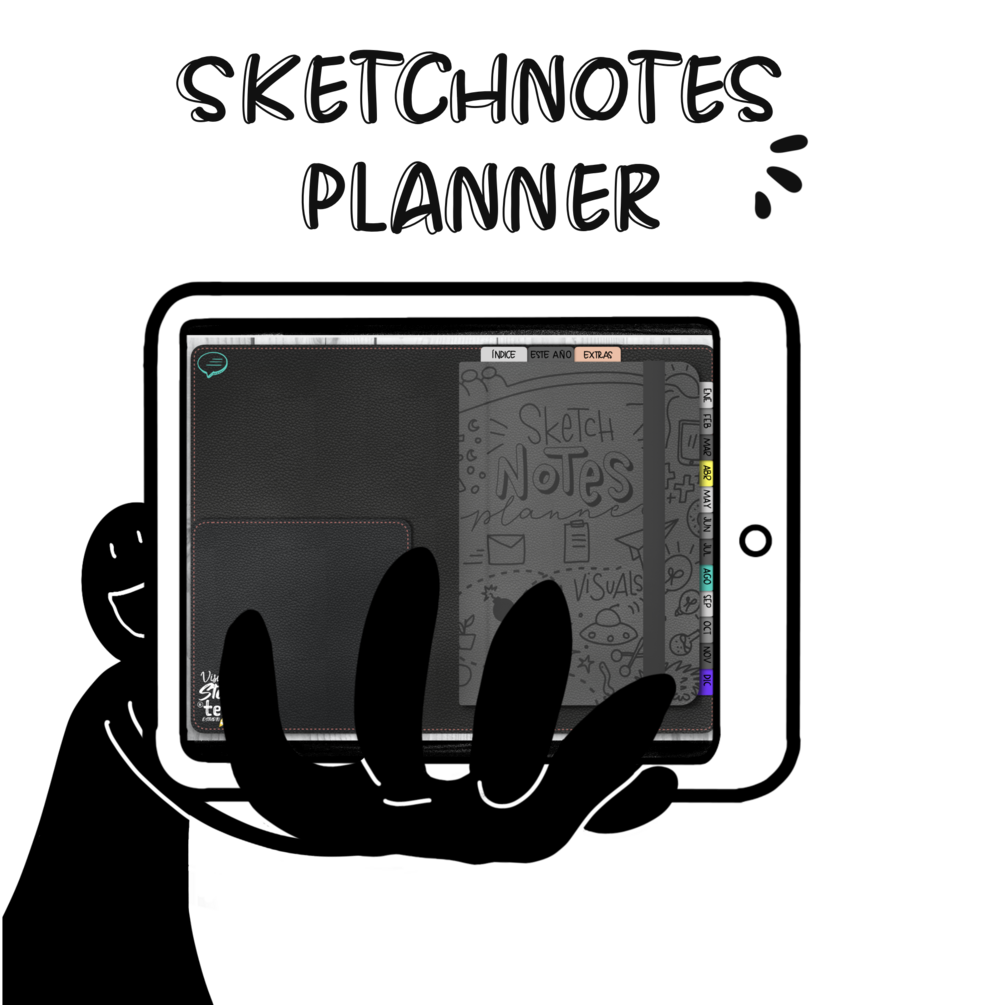 Sketchnotes Planner esta pensado para personas que quieren ser mas productivas de manera divertida y empezar a practicar las Notas visuales. Esta version en Noteshelf incluye ejemplos de como planear las semanas de enero para que las uses, te guíes o te inspires ya que las puedes borrar del planner, así como algunos stickers.