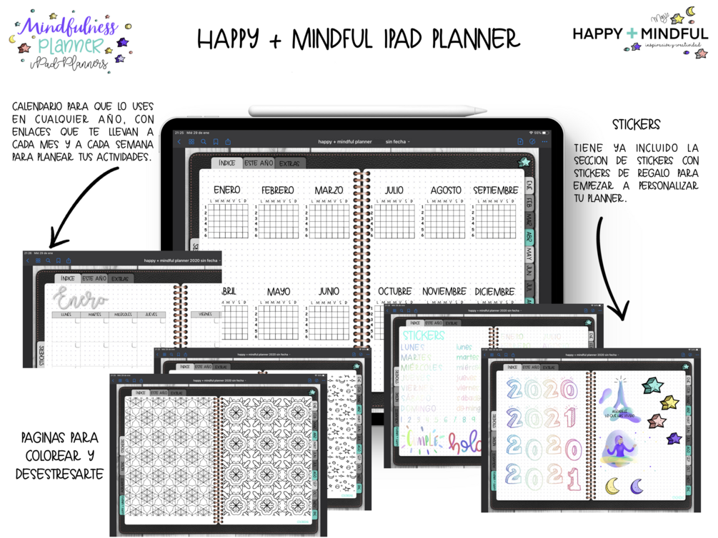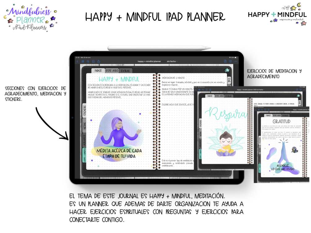 Happy + Mindful iPad Planner en PDF sin fecha (Agenda / Bullet Journal)