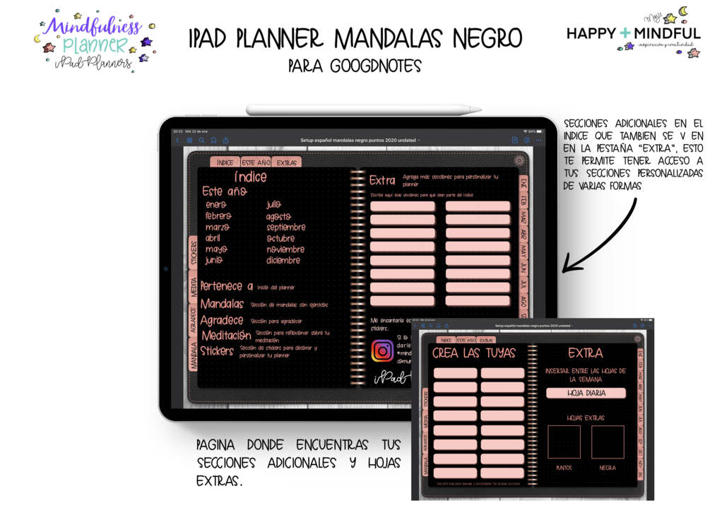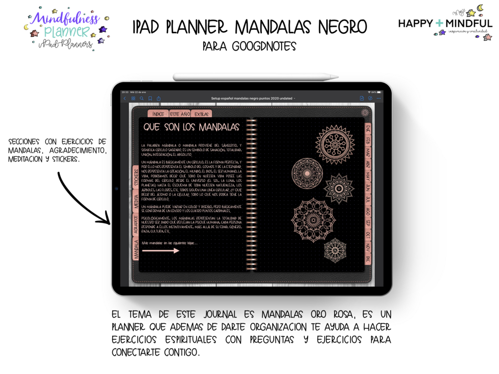 iPad Planner Mandala Rosa sin fecha para Goodnotes (Agenda / Bullet Journal)