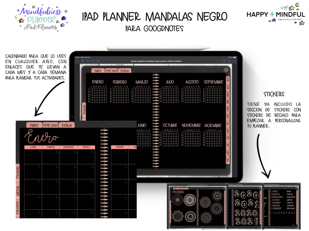 Recibes un planner en formato .goodnotes con stickers incluidas y Happy Planner Font